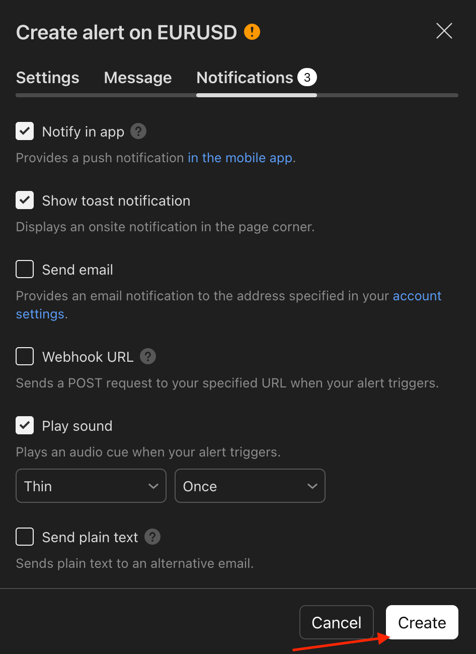 Step 5: You choose the types of notifications you'd like to receive and click the “Create” button.