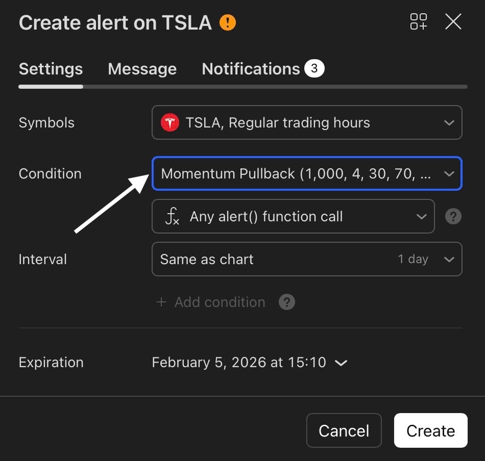 To stay updated on potential trading opportunities, you can set up alerts within the Momentum Pullback