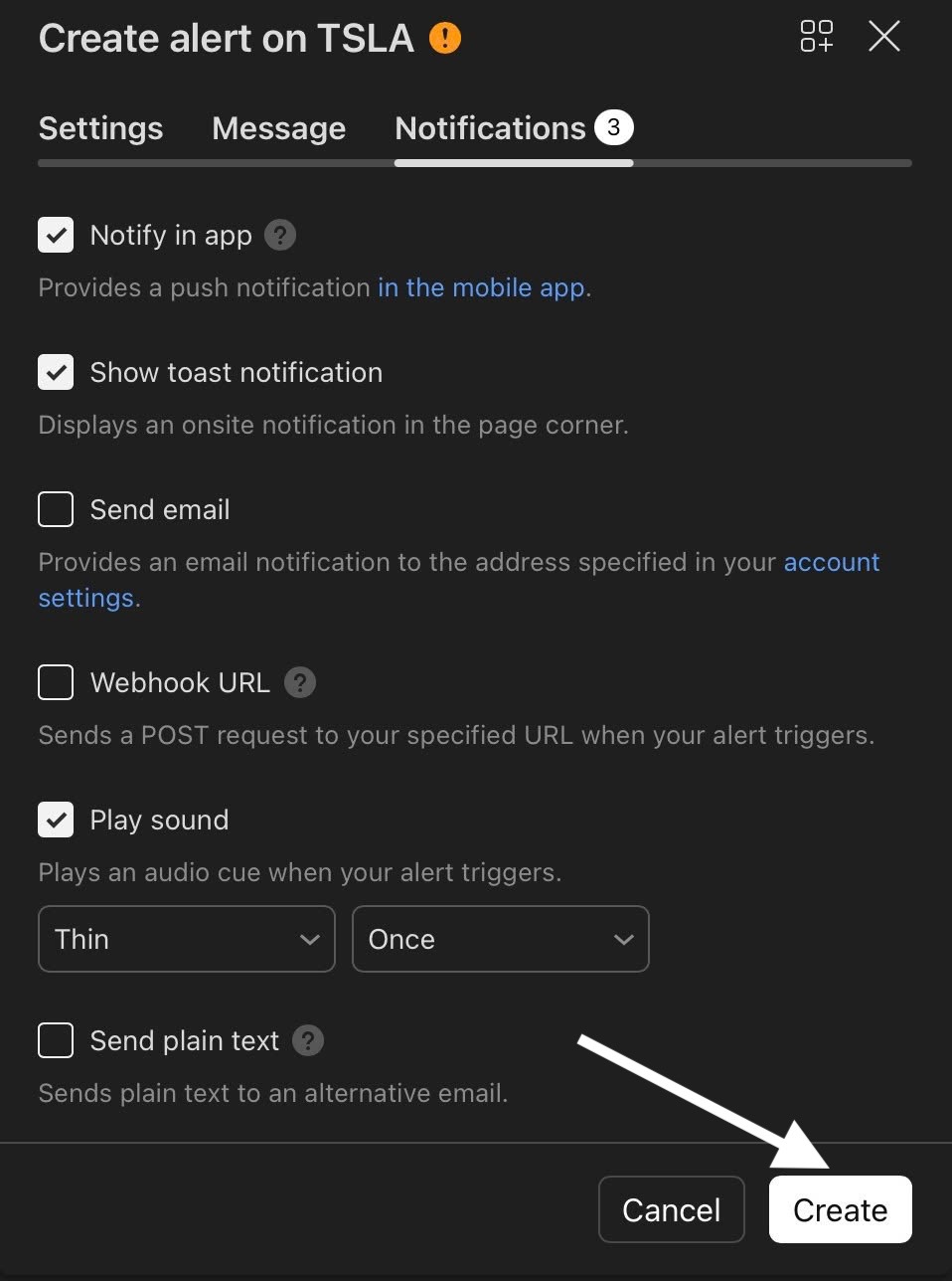 Choose how you want to receive alerts and click “Create.”
